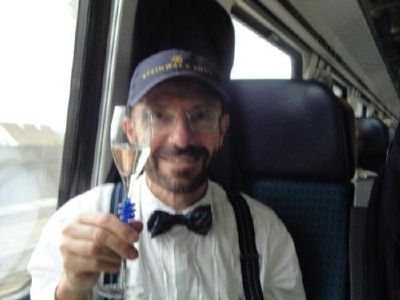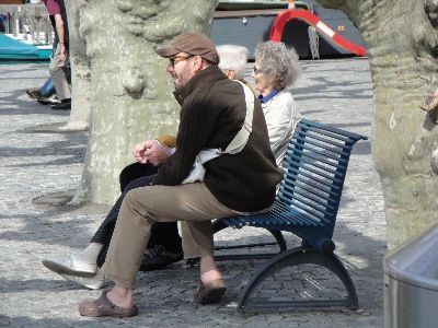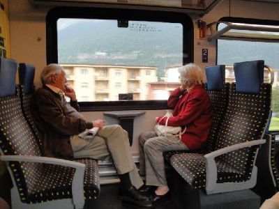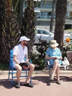 Kurz vor der Heimreise, gemütliche Plauderei in der Bahnhofshalle in Cannes